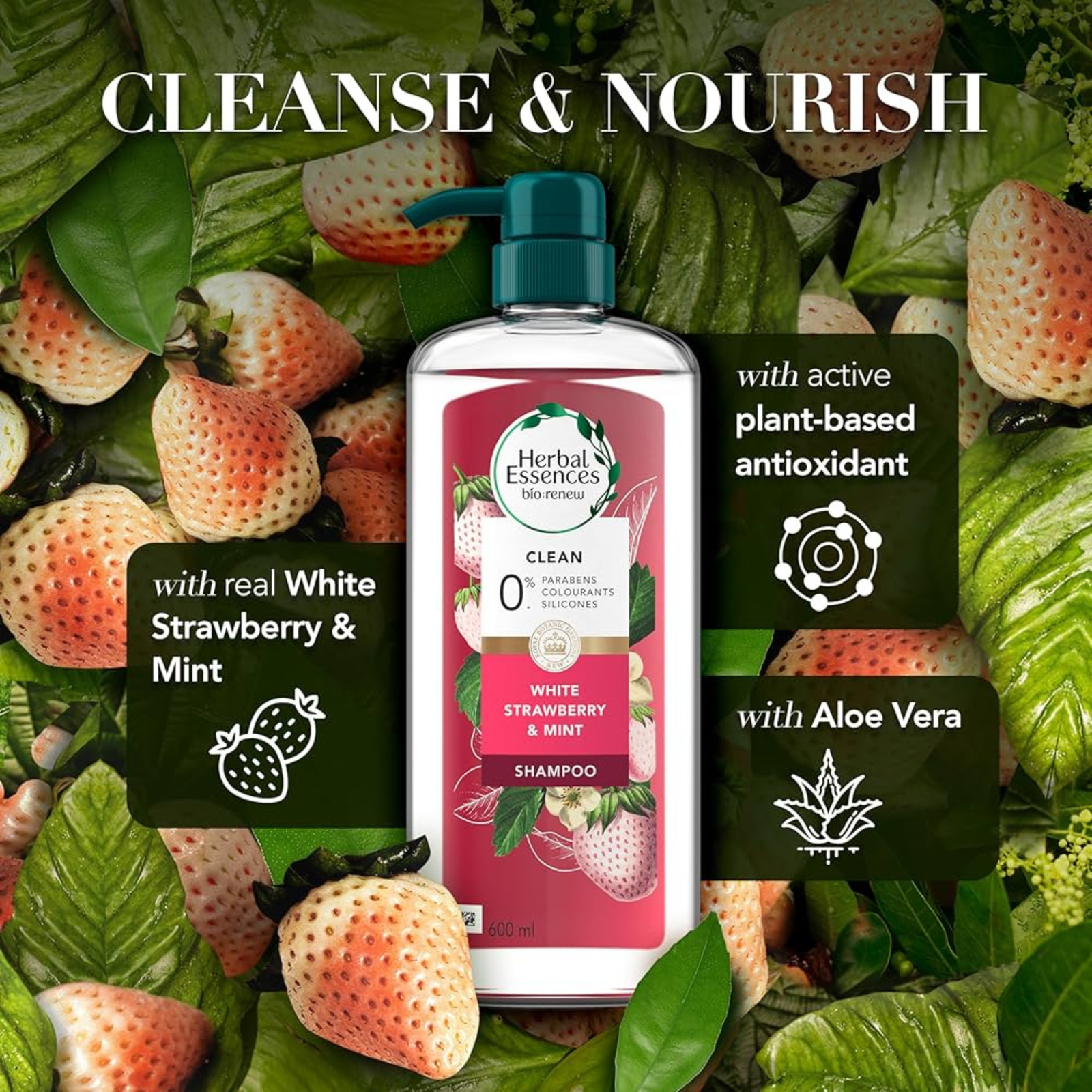 For optimal results, follow with Herbal Essences Bio:Renew White Strawberry & Mint Conditioner.