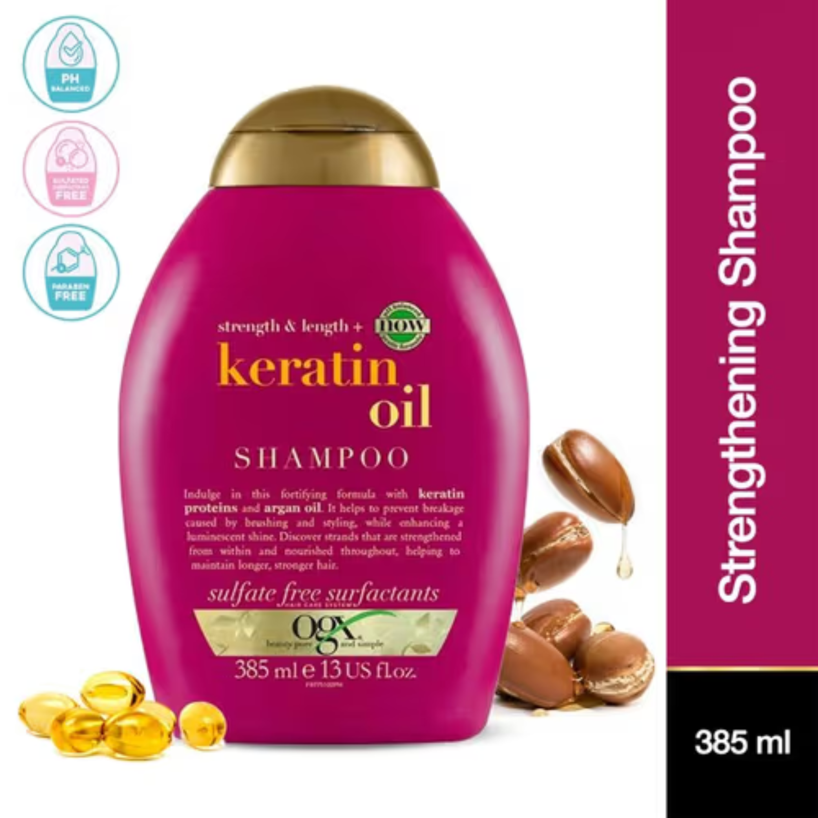 OGX Strength & Length Keratin Oil Shampoo – 385ml